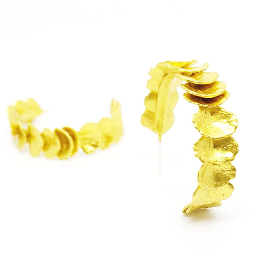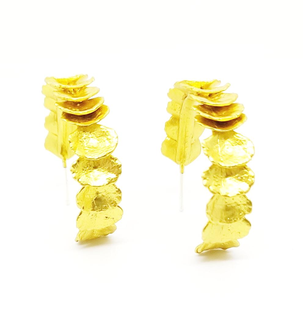 Las candongas pétalo son creadas de la experimentación y composición de formas a partir del análisis del crecimiento de las suculentas de nuestro jardín, éstas hacen parte de la Colección Raíces, para la cual utilizamos partes y formas de varias especies de suculentas que cultivamos, cuidamos y seleccionamos cuidadosamente con el fin de transformarlas e inmortalizar su esencia por medio de un proceso orgánico.